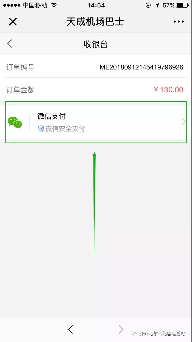 6.點(diǎn)擊微信支付。輸入支付密碼完成購票。